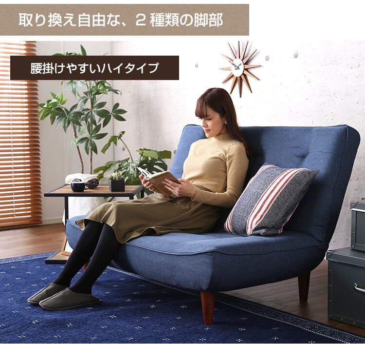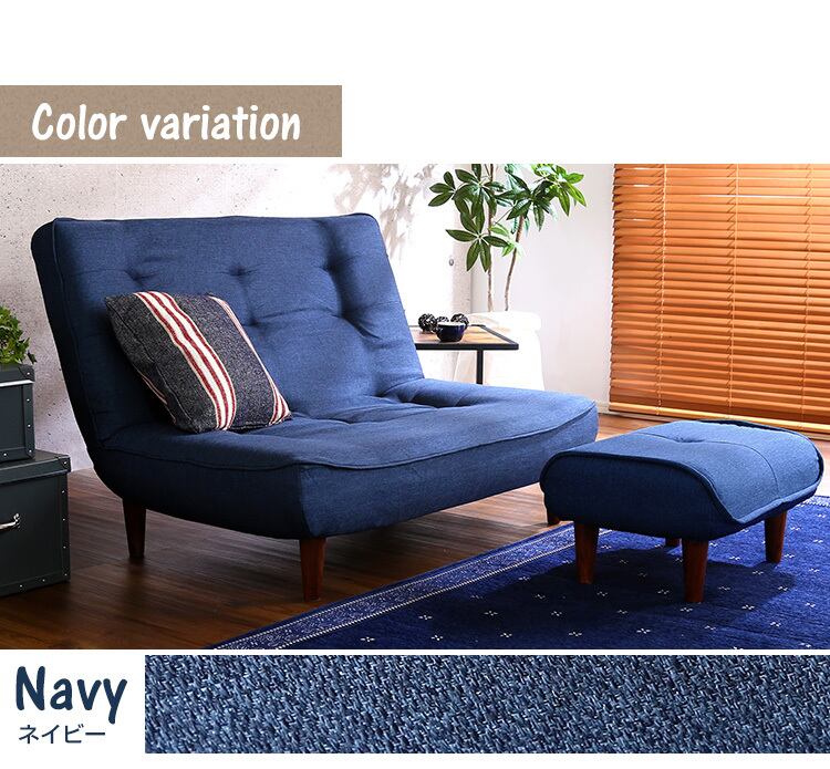 5カラー【ネイビー】2人掛ハイバックソファ(布地)ローソファにも、ポケットコイル使用、3段階リクライニング 日本製|lemmik-レミック-