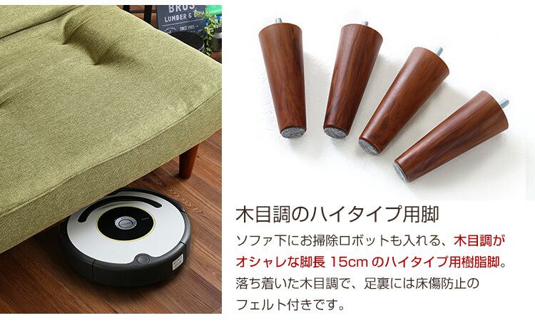 ハイタイプ木目調脚をロータイプ脚に取り換えれば座椅子としてもご利用いただけます。