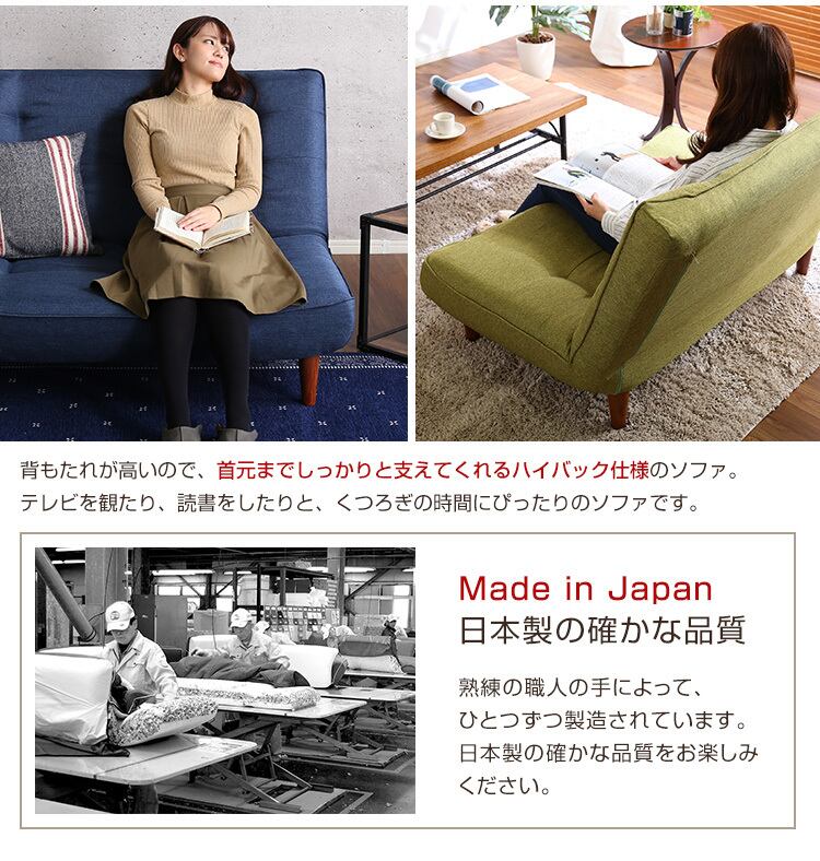 2人掛ハイバックソファ(布地)ローソファにも、ポケットコイル使用、3段階リクライニング 日本製|lemmik-レミック-