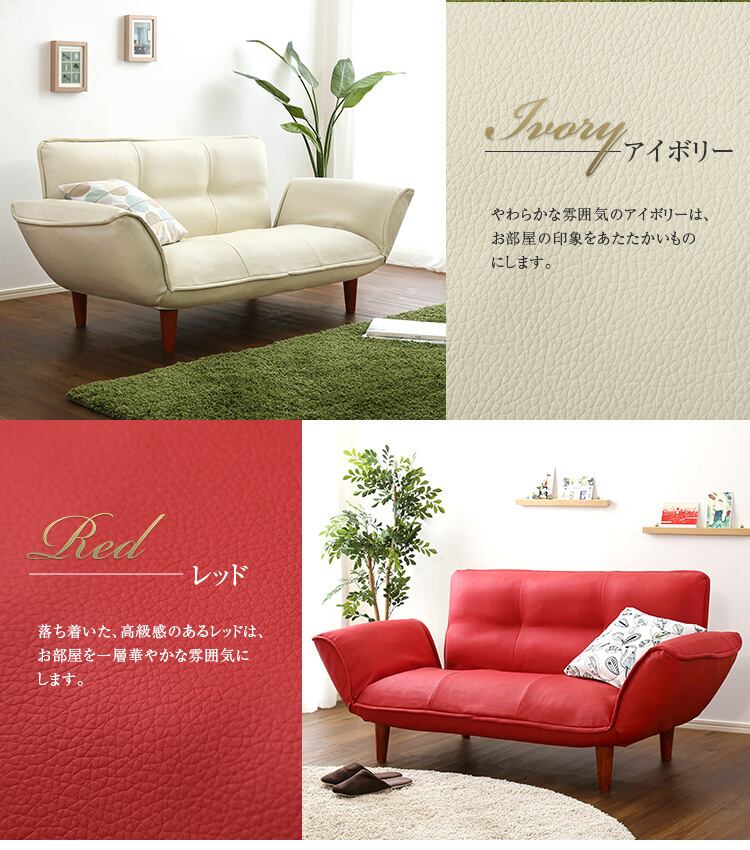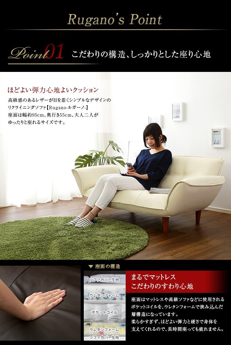 コンパクトカウチソファ【Rugano-ルガーノ-】(ポケットコイル リクライニング レザー風 日本製)