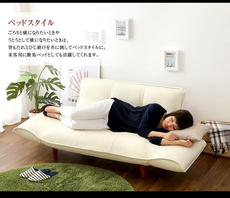コンパクトカウチソファ【Rugano-ルガーノ-】(ポケットコイル リクライニング レザー風 日本製)