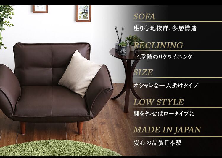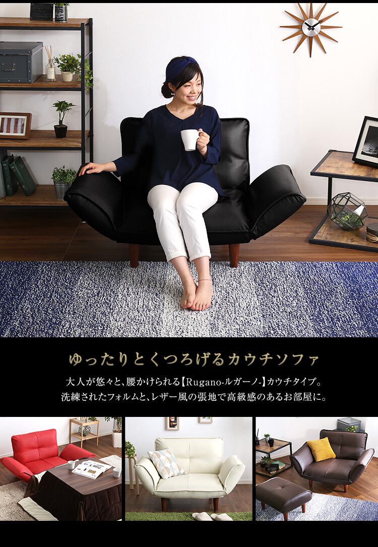 1人掛ソファ(PVCレザー)14段階リクライニング、フロアソファ、カウチソファに 日本製|Rugano-ルガーノ-