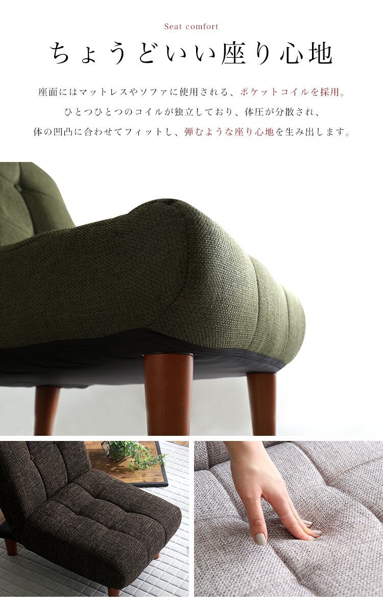 座り心地抜群のポケットコイルを使用した1人掛けボリュームフロアソファ