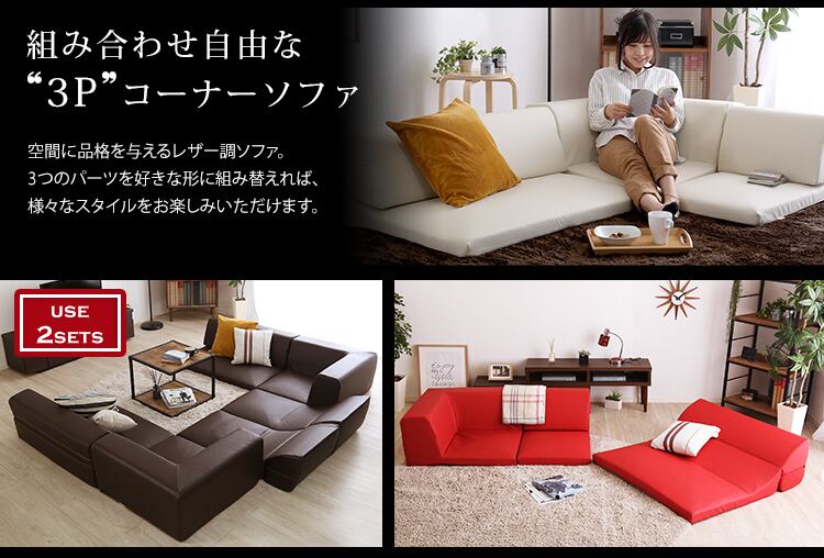 好きな形にアレンジできる、組み合わせ自由な3Pコーナーローソファ!