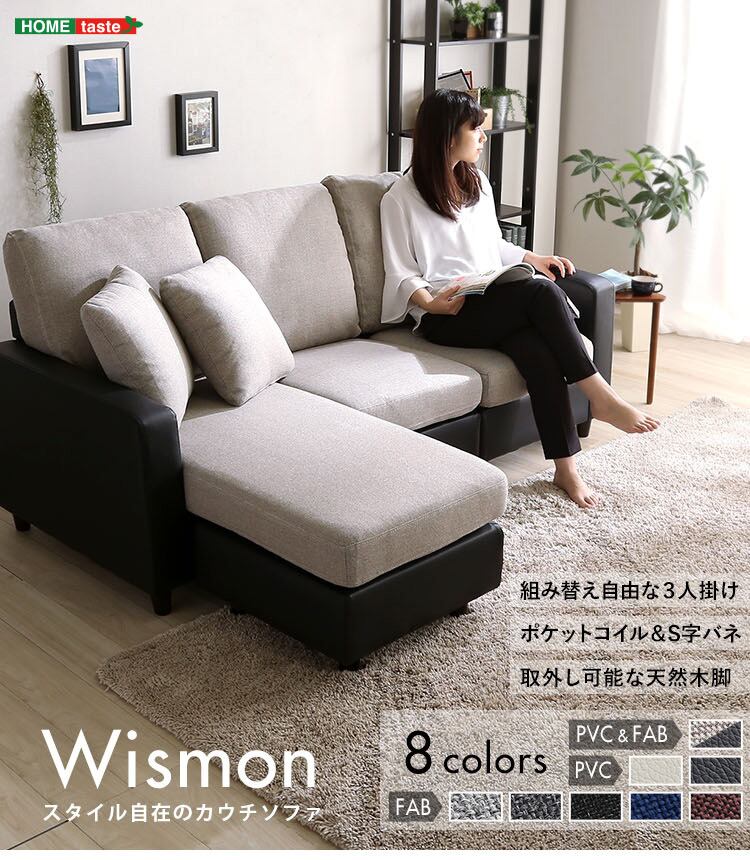 8カラー【グレー】レイアウト自在! 3人掛けカウチソファ【Wismon -ウィスモン-】 (ポケットコイル入り 選べる8色)