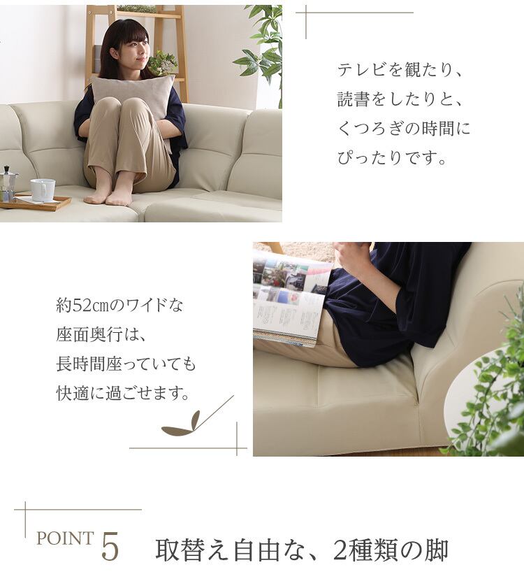 ゆったり座れるワイド設計と取替え自由な2種類の脚で、リビングライフの多様性に応える充実のソファです。