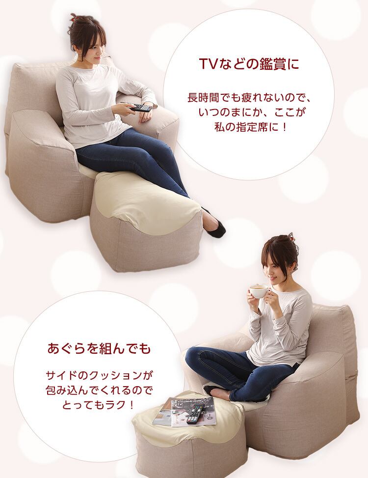 座るとクセになる新感覚のスゴビーズソファとオットマンセット!