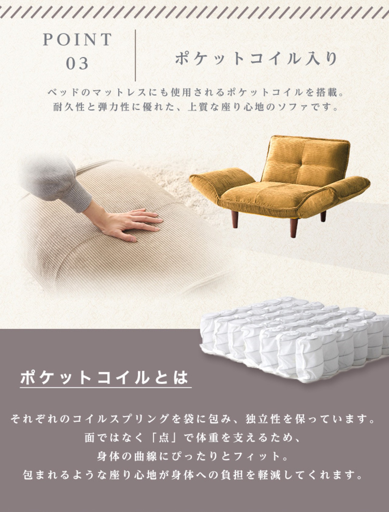 ポケットコイル搭載で耐久性GOOD!
