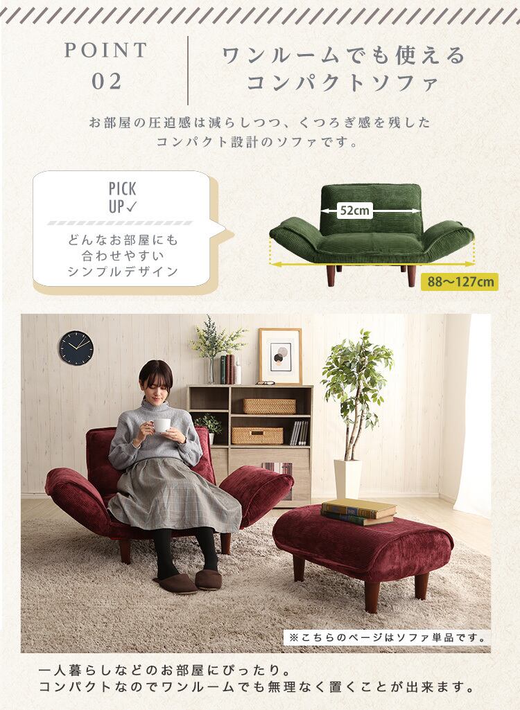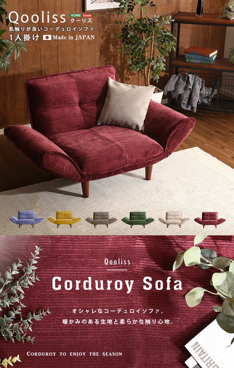 コーデュロイ生地で肌触りが気持ちい1人掛けコンパクトソファ!
