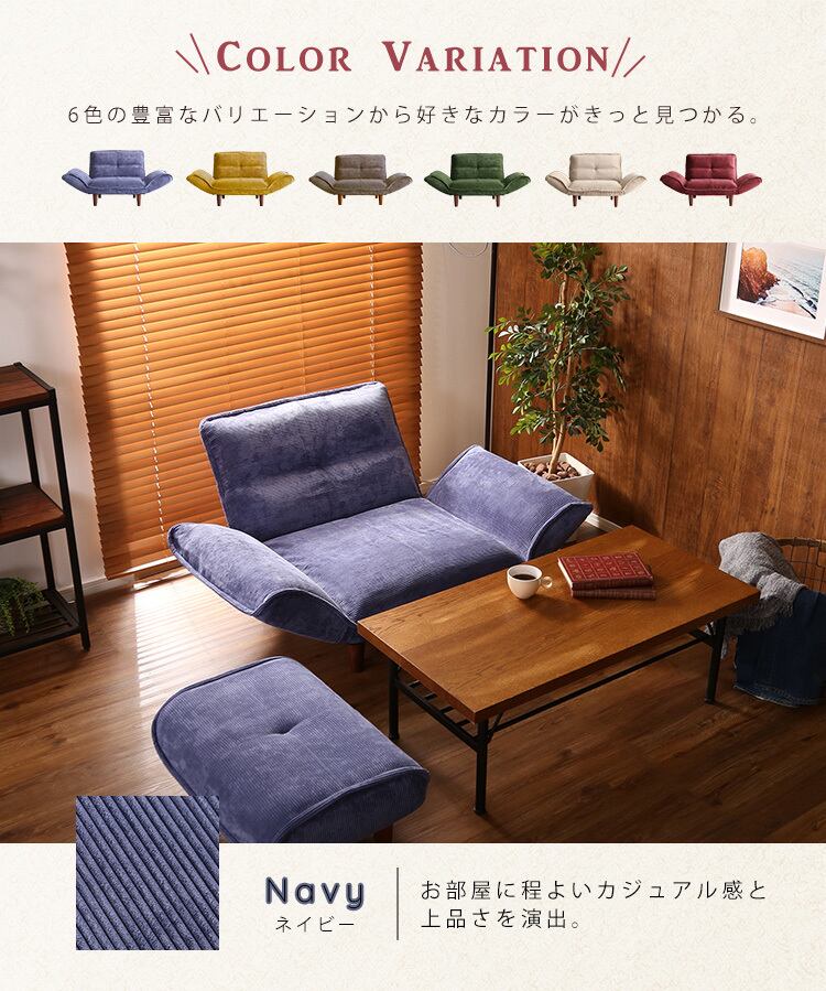 6カラー【ネイビー】肌触りが良いコーデュロイソファ 1人掛け 【Qooliss-クーリス-】