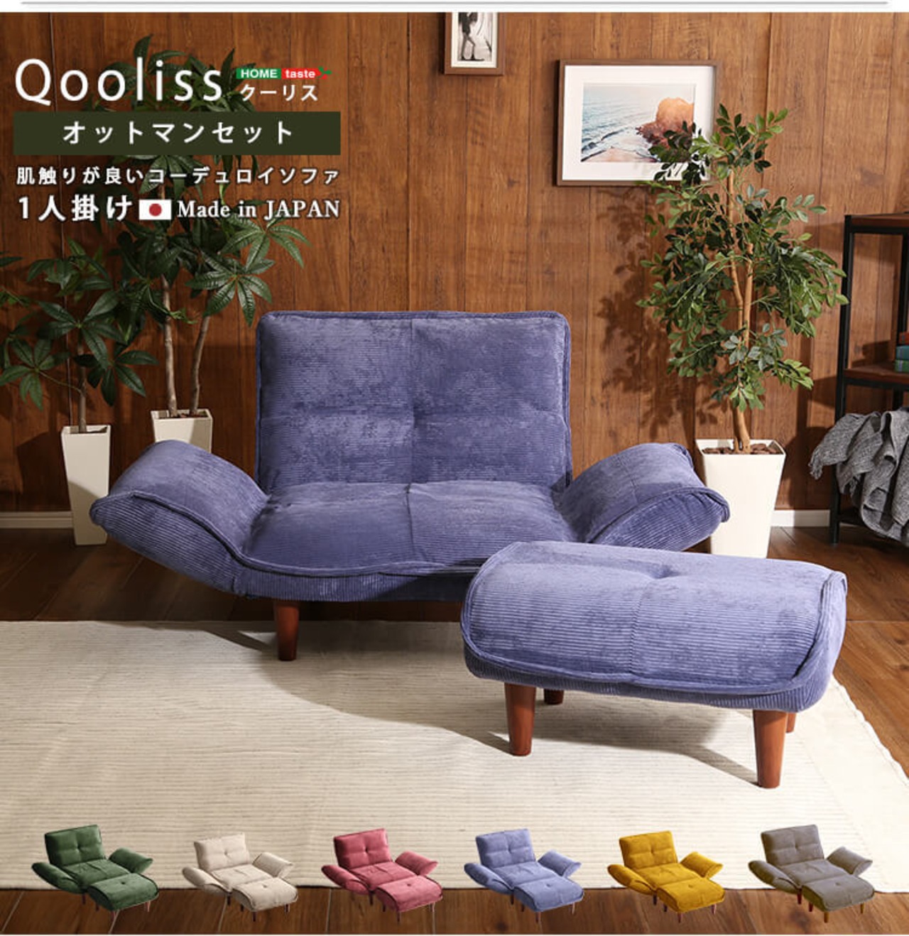 コーデュロイ生地で肌触りが気持ちい1人掛けコンパクトソファとオットマンのセット!