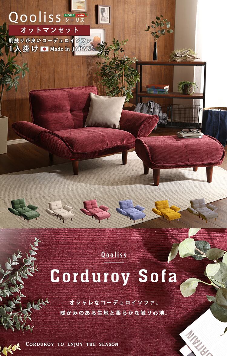 6カラー【ブラウン】肌触りが良いコーデュロイソファ 1人掛け オットマンセット【Qooliss-クーリス-】