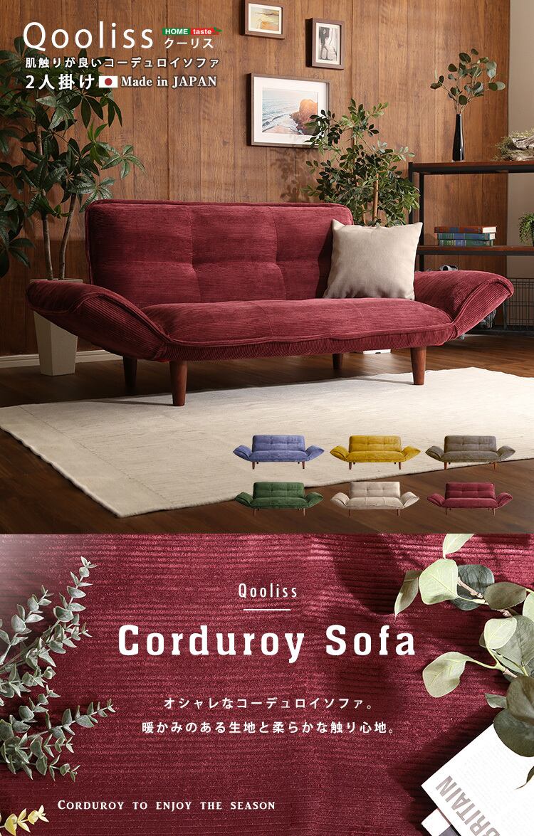 6カラー【ベージュ】肌触りが良いコーデュロイソファ 2人掛け 【Qooliss-クーリス-】