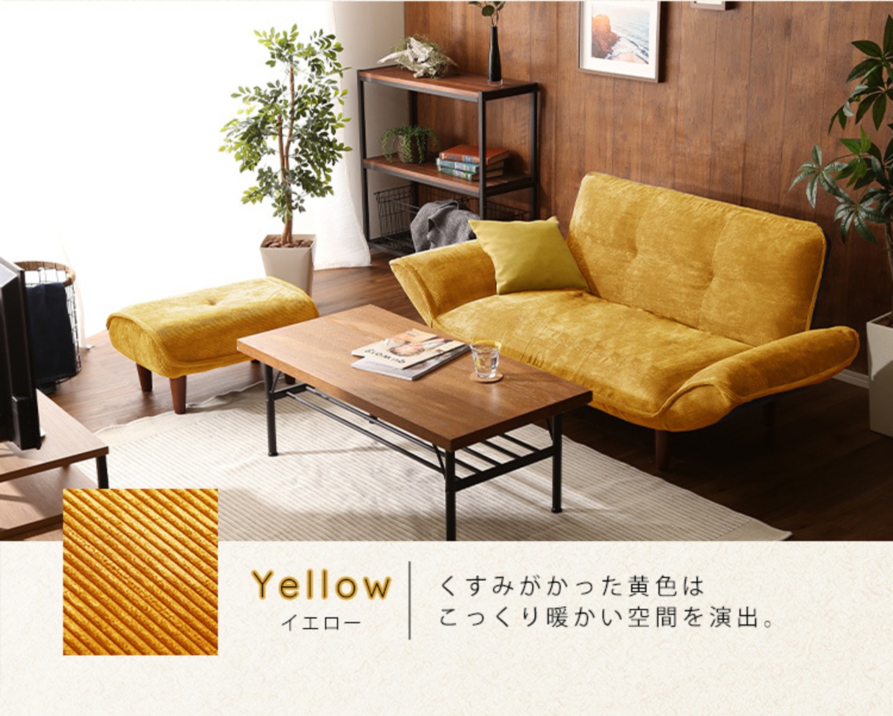 6カラー【イエロー】肌触りが良いコーデュロイソファ 2人掛け オットマンセット【Qooliss-クーリス-】