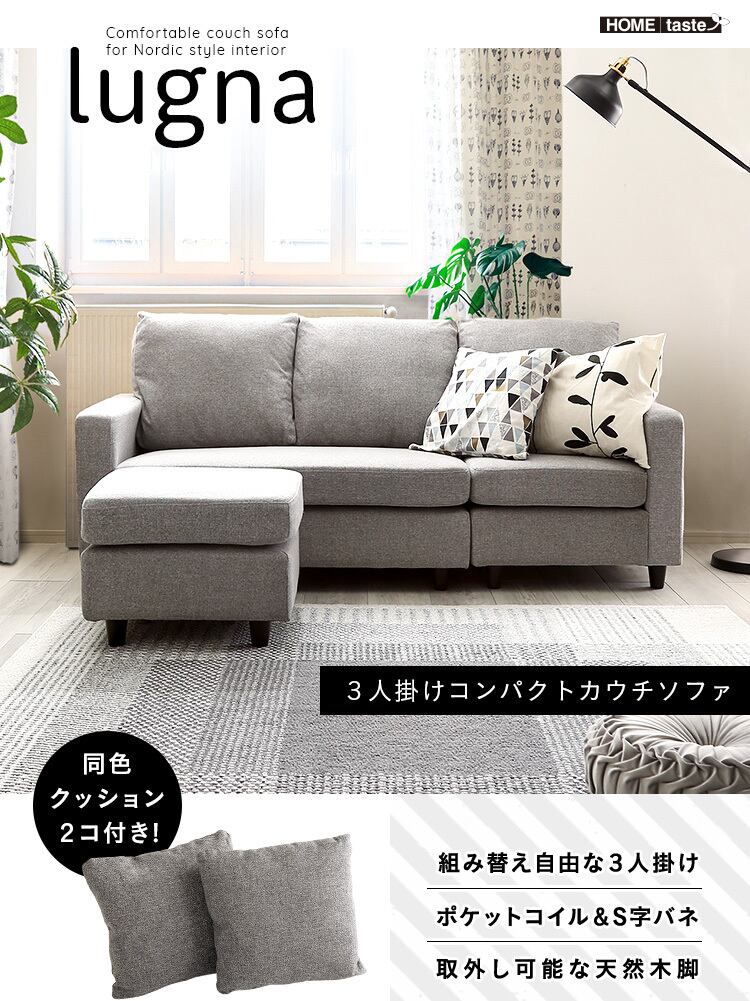 北欧スタイルの3人掛けコンパクトカウチソファ!