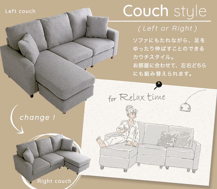 北欧スタイルの3人掛けコンパクトカウチソファ!