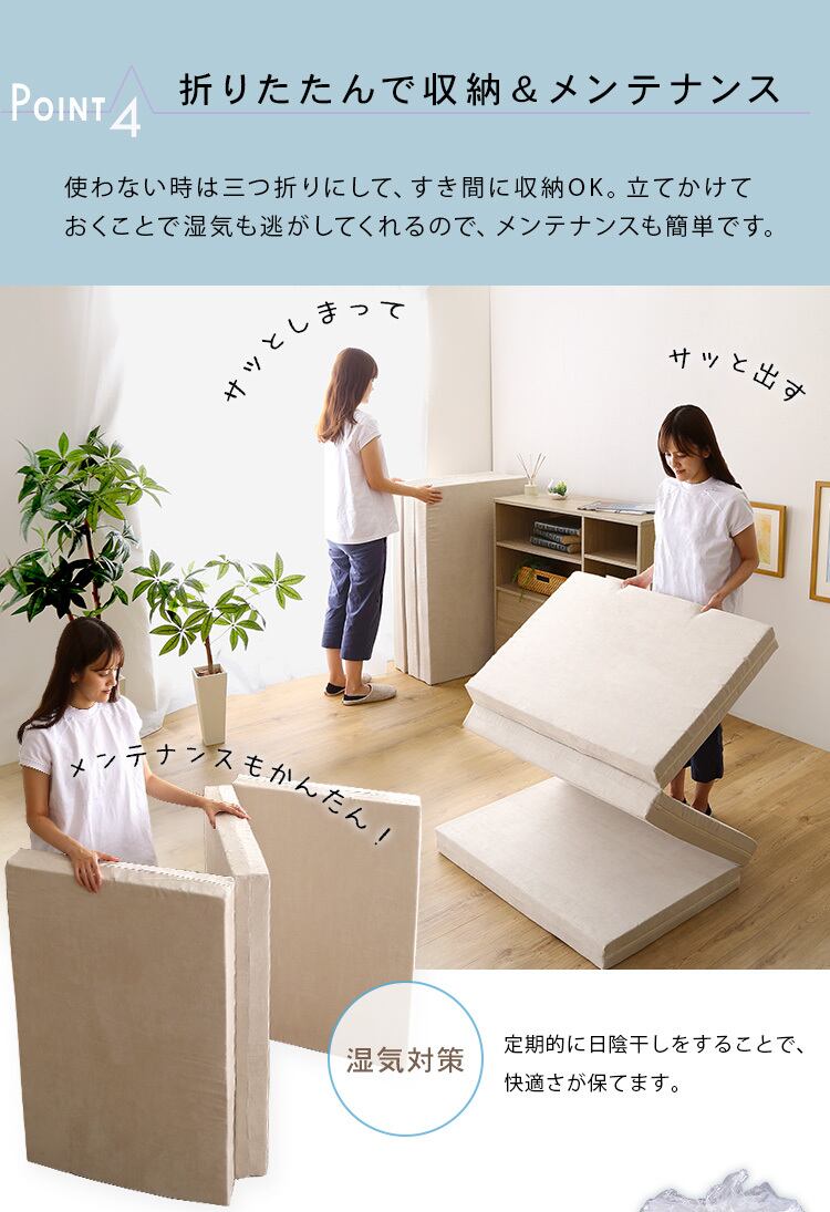 三つ折りタイプの折りたたみマットレスSサイズ!