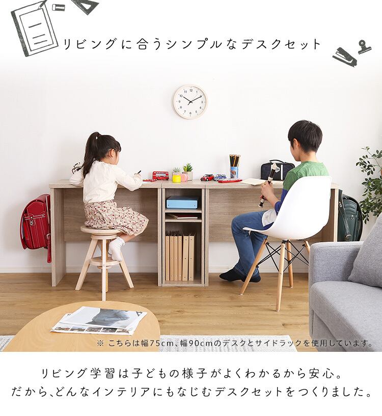 子どもから大人まで使えるリビングに合うシンプルデスクセット60cm幅、ラックは30cm幅!