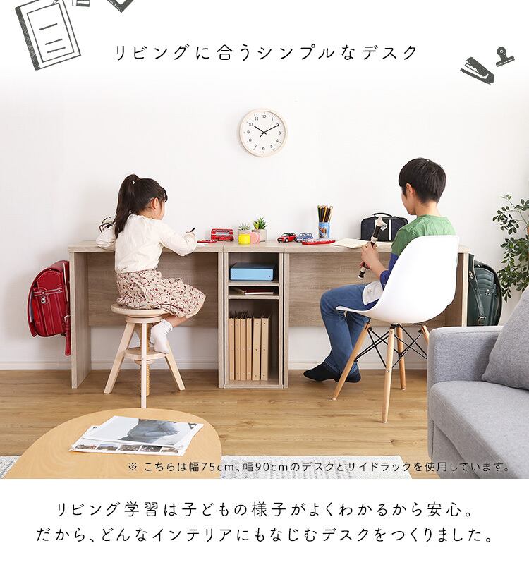 子どもから大人まで使えるリビングに合うシンプルデスク75cm幅!