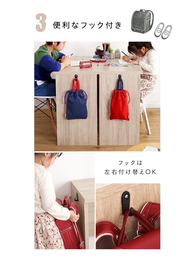 デスクのサイドにはランドセルやバッグが掛けれるフック付きです!