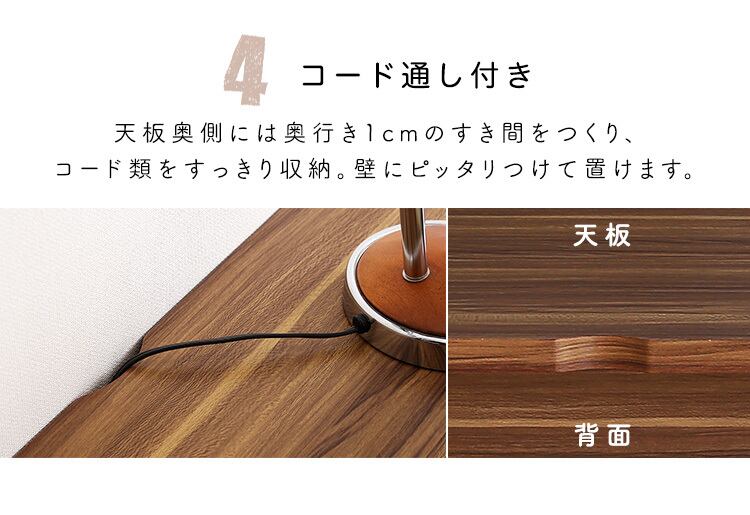 デスクの背面にはライトやパソコンのコードを通せる隙間を作っているので、スッキリ収納できます。