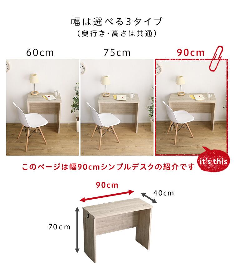 子どもから大人まで使えるリビングに合うシンプルデスク90cm幅!