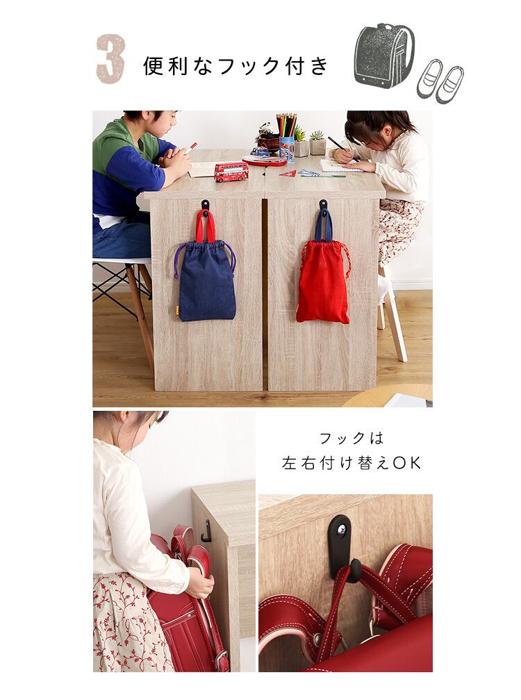 デスクのサイドにはランドセルやバッグが掛けれるフック付きです!