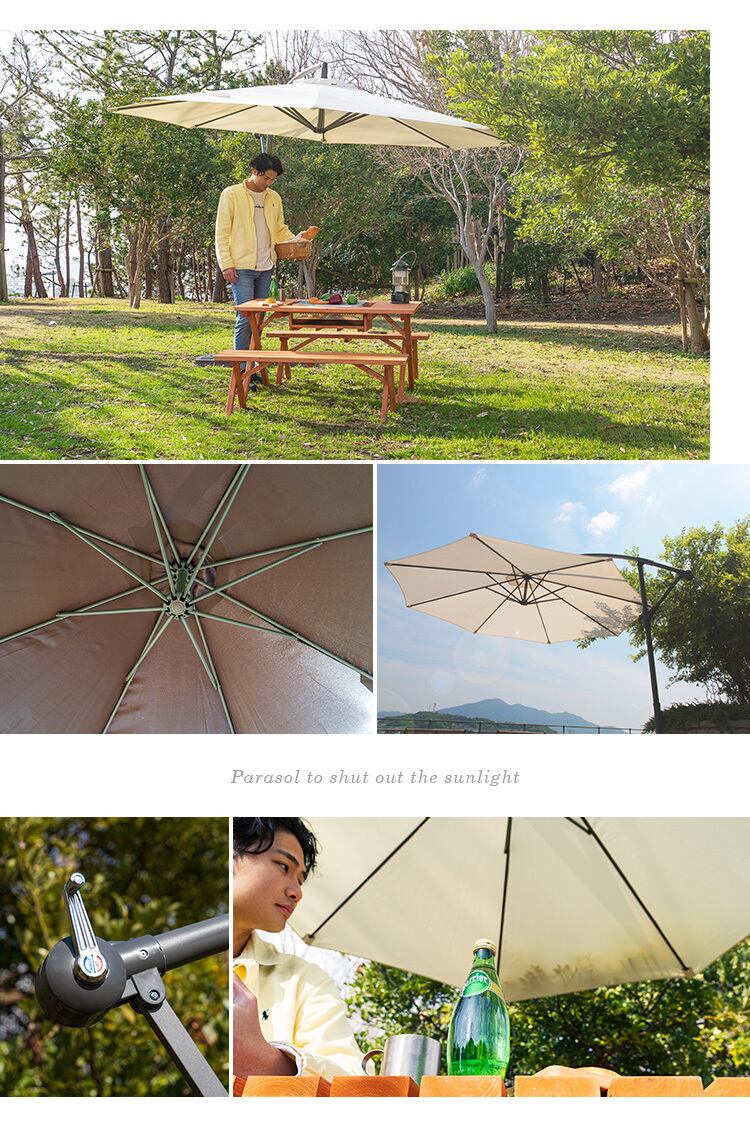 直径3mの傘でしっかりと日陰を作る事ができるパラソル!