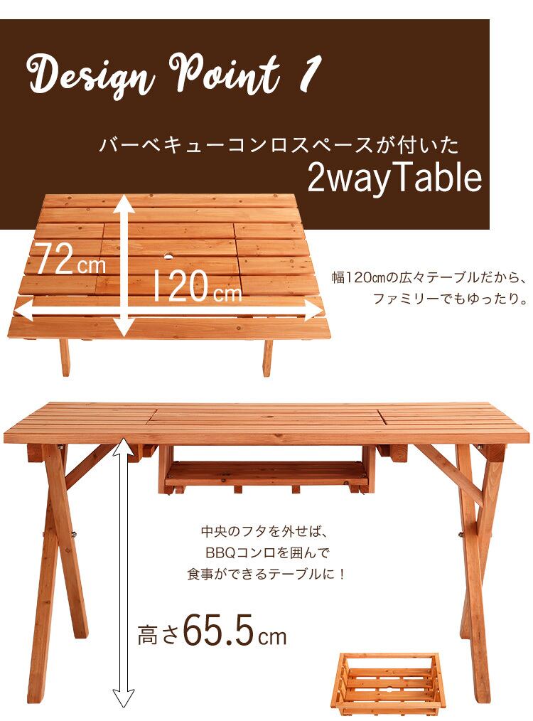 杉材の天然木を使用したテーブルとベンチのバーベキュー3点セット!