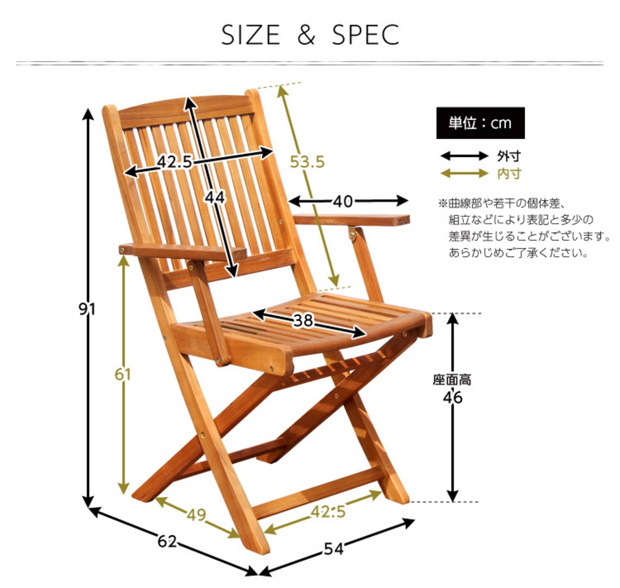 天然木アカシア材使用の肘付きチェア2脚セット!