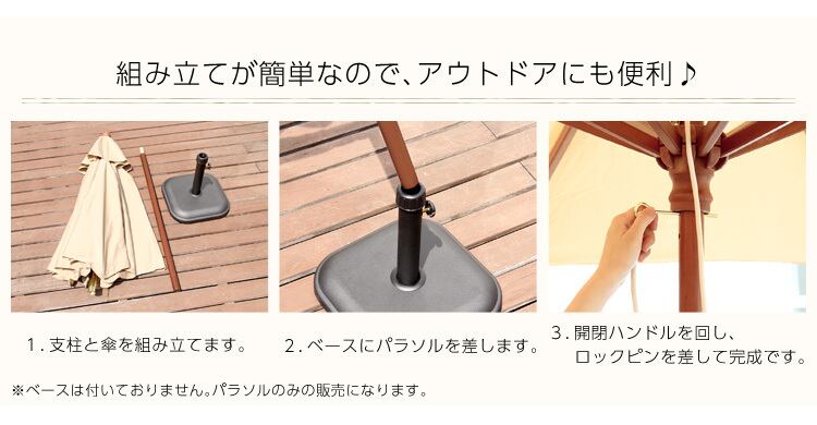 パラソルは柄と組み合わせるだけの完成品!