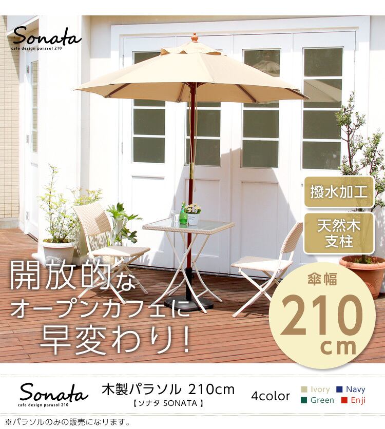 天然木 木製パラソル 210cm【ソナタ-SONATA-】パラソル 撥水 天然木