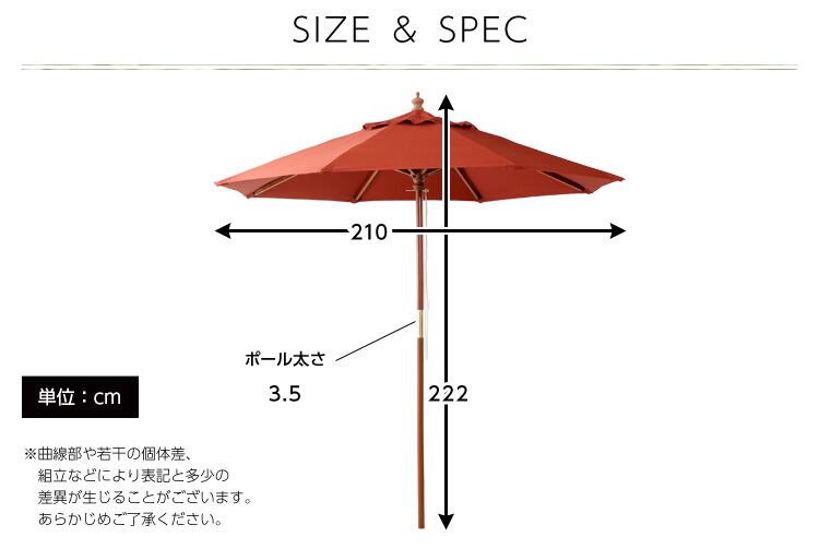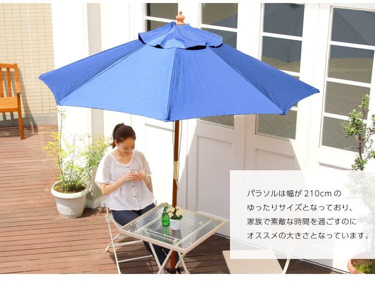 天然木 木製パラソル 210cm【ソナタ-SONATA-】パラソル 撥水 天然木