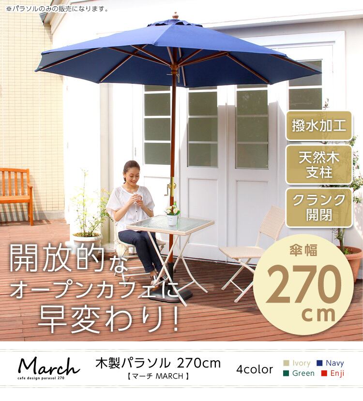 天然木 木製パラソル 270cm【マーチ-MARCH-】(パラソル 撥水 天然木)