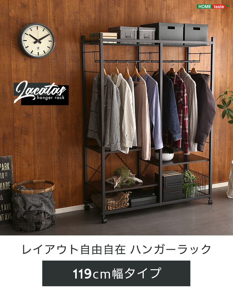 木の温かみととブラックスチールの美しいコントラストが映えるデザインハンガーラック119cm幅!