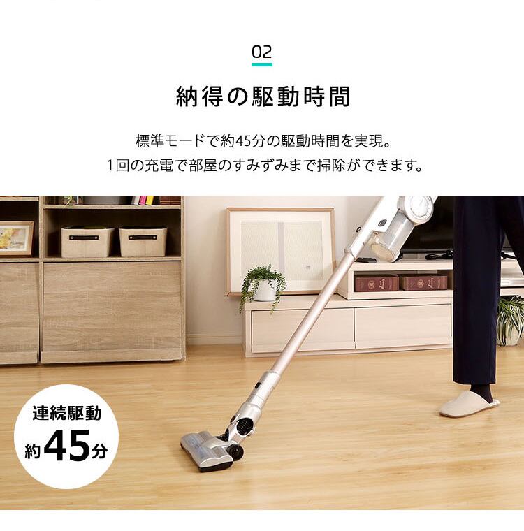 掃除機は標準モードで45分の駆動時間を実現!