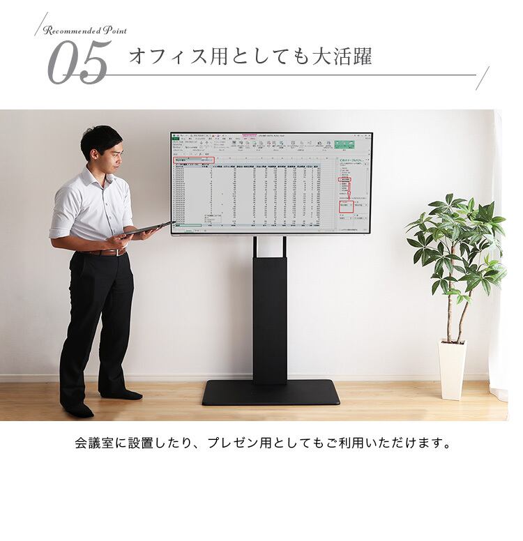 生活スペースを取らない壁寄せテレビスタンド(スイングハイタイプ)!最大可動域240度のワイドスイング機能付き!取付けテレビは32~55インチまで対応可能。配線や電源タップを背面に収納でき、見た目が綺麗でスッキリ!震度7の耐震試験をクリア!
