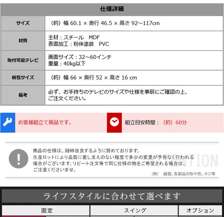 ご注文前に必ずテレビ適合表をご確認いただいた上で