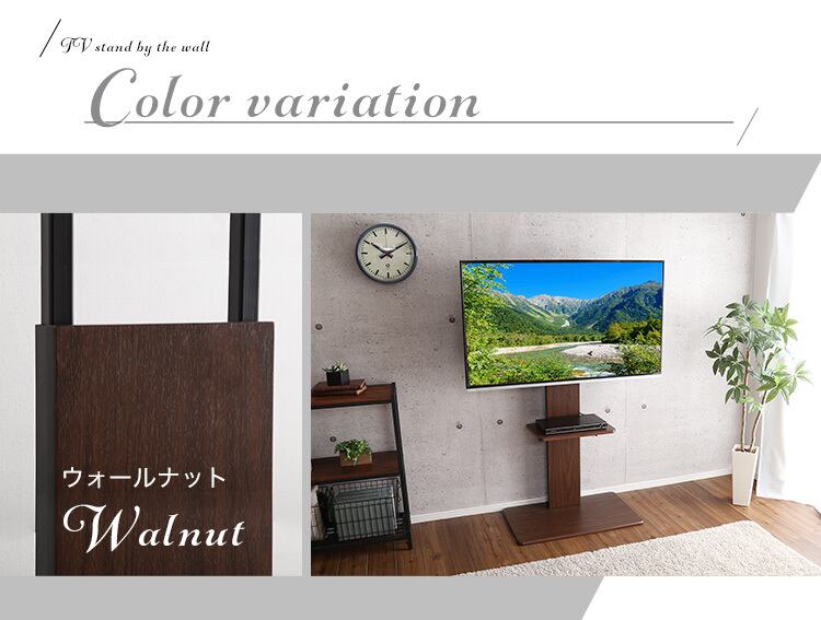生活スペースを取らない壁寄せテレビスタンド(固定ハイタイプ)!取付けテレビは32~60インチまで対応可能。配線や電源タップを背面に収納でき、見た目が綺麗でスッキリ!震度7の耐震試験をクリア