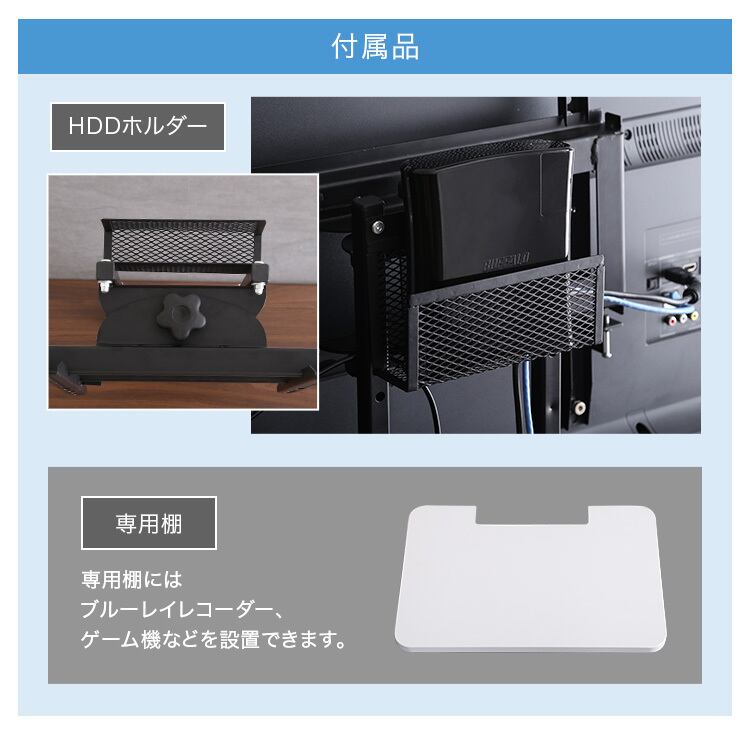 ※専用棚にレコーダーやゲーム機などを置いた際に専用棚が平行になるように少し上向きになるように