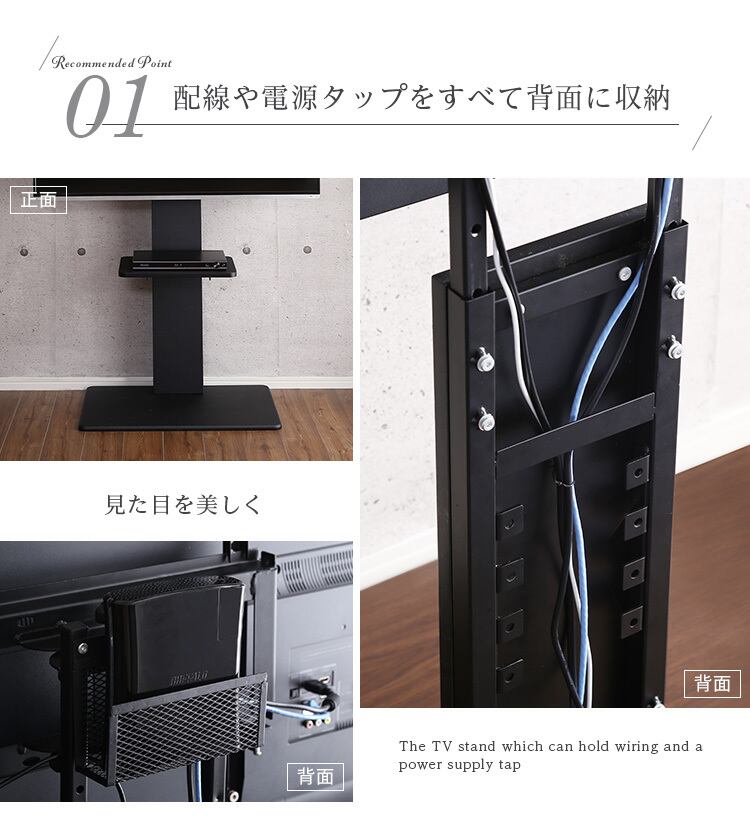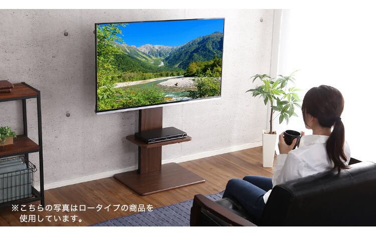 生活スペースを取らない壁寄せテレビスタンド(固定ハイタイプ)!取付けテレビは32~60インチまで対応可能。配線や電源タップを背面に収納でき、見た目が綺麗でスッキリ!震度7の耐震試験をクリア!専用棚とSETにしてお得になりました。