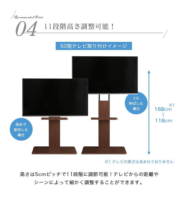 生活スペースを取らない壁寄せテレビスタンド(スイングハイタイプ)!最大可動域240度のワイドスイング機能付き!取付けテレビは32~55インチまで対応可能。配線や電源タップを背面に収納でき、見た目が綺麗でスッキリ!震度7の耐震試験をクリア!専用棚とSETにしてお得になりました。