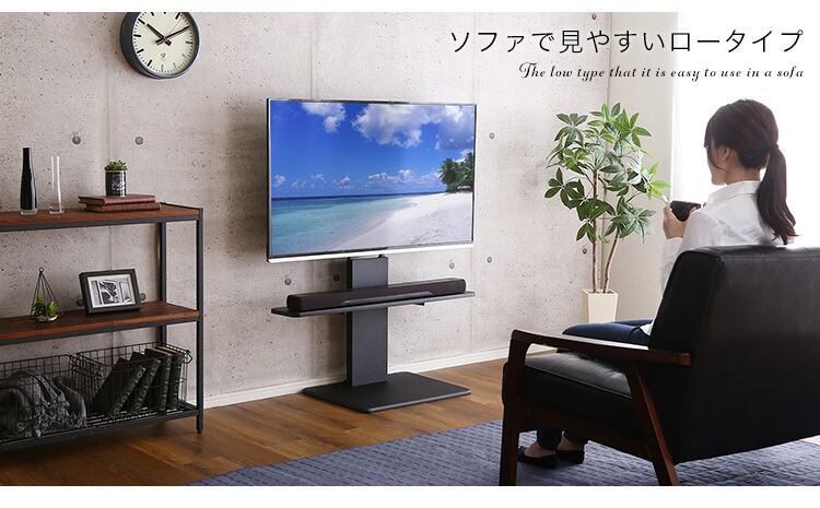 生活スペースを取らない壁寄せテレビスタンド(固定ロータイプ)!取付けテレビは32~60インチまで対応可能。配線や電源タップを背面に収納でき、見た目が綺麗でスッキリ!震度7の耐震試験をクリア!サウンドバー専用棚とSETにしてお得になりました。