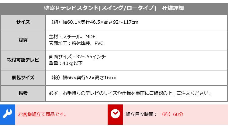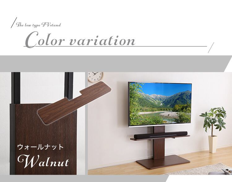3カラー【ウォールナット】壁寄せテレビスタンド ロースイングタイプ ロー・ハイ共通 サウンドバー 100cm幅 SET
