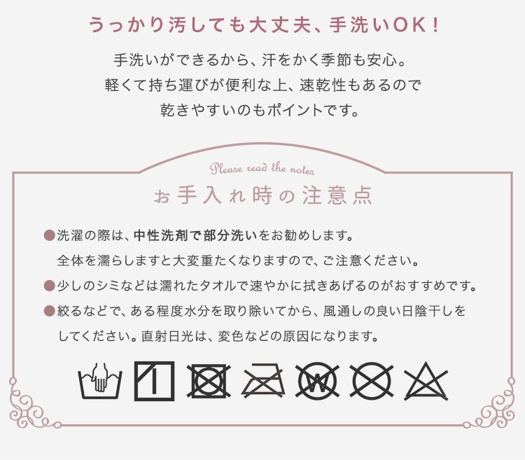 汚れても手洗いが出来るから汗をかく季節でも安心!