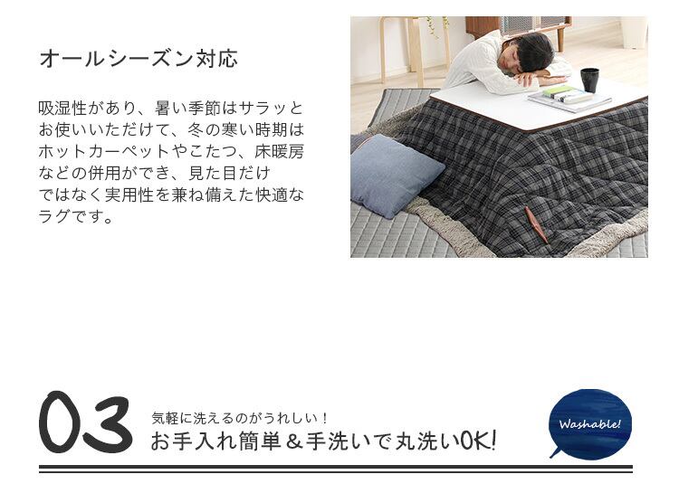 4カラー【ネイビー】キルティングデニム調ラグMサイズ(185x185cm)オールシーズン、滑り止め付き、手洗い対応【Derid-デリッド-】